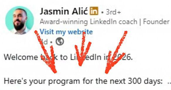 - Jasmin Alić – Storytelling and the “Rehook”: Jasmin (often known as Jay) is a copywriter and strategist who emphasizes narrative in posts. One of his cited hook styles is the “Rude Awakening” story . For example, a Jasmin hook template goes: “I once [did something ordinary for a client], [and got an unexpected/shocking result]. I felt [strong emotion]. Here’s how it played out…” . This style pulls you into a mini-story right away with a first-person anecdote, plus the promise “here’s how it played out” acting as a cliffhanger. It works because readers love concrete stories (it’s specific: “I once did X for a Y and Z happened”) and it triggers an emotional hook (surprise, embarrassment, triumph). Jasmin is also a big proponent of maintaining momentum after the hook. He coins the term “rehook” for a mid-post reinforcement that keeps readers engaged . For instance, if his hook sets up a story, a few lines later he might drop another intriguing piece of information or question to re-spark curiosity before interest wanes. On LinkedIn Audio or Video, this might be analogous to a hook at the beginning and a twist in the middle. In text, it could be as simple as a one-line paragraph that teases “But here’s the twist…” or “What happened next changed my view on X.” Jasmin explicitly says: “A hook is 90% of a good post… but if the rest of the post doesn’t follow the same energy or promise, it falls apart.” . So he ensures his content delivers a payoff and often circles back at the end to the hook’s setup (completing the story or lesson).